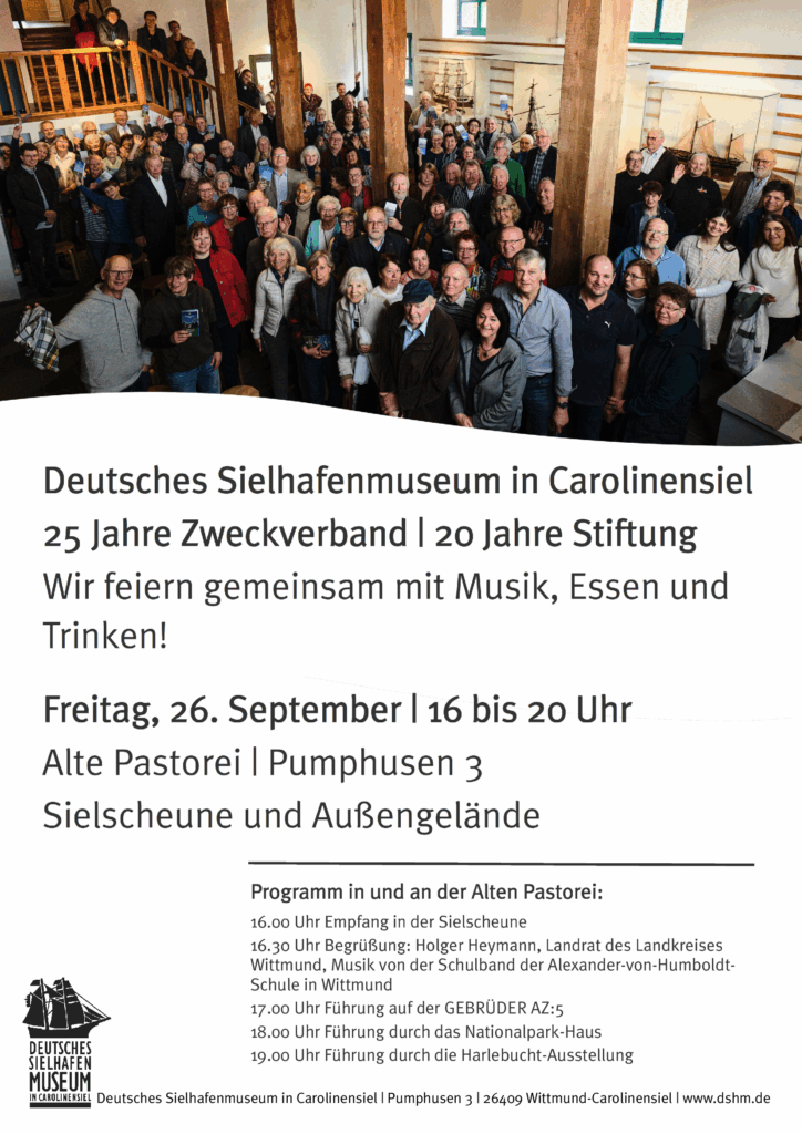 25 Jahre Zweckverband Deutsches Sielhafenmuseum und 20 Jahre Stiftung Im Jahr 2000 gründeten der Förderkreis Deutsches Sielhafenmuseum in Carolinensiel e.V., die Stadt Wittmund und der Landkreis Wittmund den Zweckverband Deutsches Sielhafenmuseum in Carolinensiel und stellten damit das Fortbestehen des Museums auf ein tragfähiges Fundament. Der Zweckverband fördert und sichert dessen Pflege, Erhaltung und Erweiterung genauso wie die Durchführung wissenschaftlicher Vorhaben laut Satzung. Viele Erfolge hat das mittlerweile auf drei Museumsgebäude…