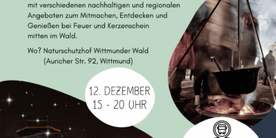 Das zauberhafte Ambiente, die besondere Atmosphäre im Dunkeln des Waldes, funkelnder Kerzenschein, Lichterketten, verschiedene Feuerstellen und liebevoll gestaltete Verkaufsstände – all das machte den Weihnachtsmarkt im Wittmunder Wald in den vergangenen Jahren zu einem unvergesslichen Erlebnis für die Besucherinnen und Besucher. Dieses Jahr öffnet der Weihnachtsmarkt im Wittmunder Wald am 12. Dezember von 15 bis 20 Uhr erneut seine Tore und lädt zu einem nachhaltigen und festlichen Erlebnis ein. Mehr…
