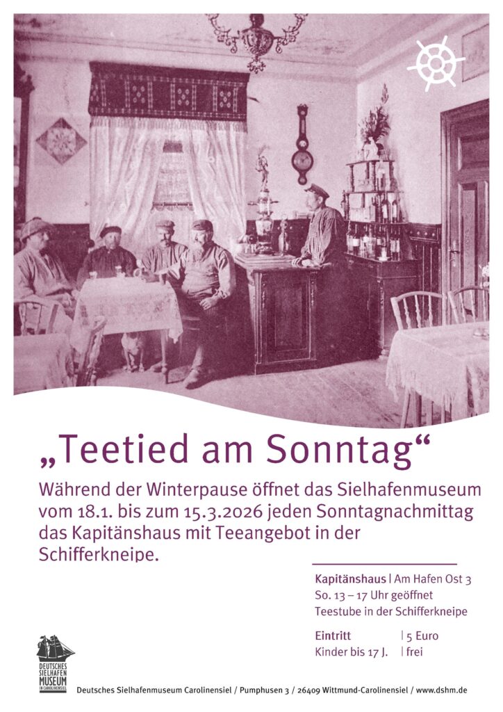 Es ist Winterpause im Deutschen Sielhafenmuseum in Carolinensiel. Die Mitarbeiterinnen und Mitarbeiter des Museums nutzen diese Zeit für Inventurarbeiten, Sammlungspflege, Reparaturen, Fortbildungen, Ausstellungsvorbereitungen und die Saisonplanung für das Jahr 2026. Bis zum Saisonstart am 22.3.2026 bleiben die Museumsgebäude am malerischen Museumshafen in Carolinensiel die meiste Zeit geschlossen. Doch ab dem 18.1. ist das Kapitänshaus auf der Hafen-Ostseite regelmäßig jeden Sonntag von 13 bis 17 Uhr zur Besichtigung geöffnet. Die ehrenamtlichen…