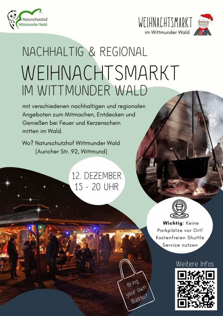 Das zauberhafte Ambiente, die besondere Atmosphäre im Dunkeln des Waldes, funkelnder Kerzenschein, Lichterketten, verschiedene Feuerstellen und liebevoll gestaltete Verkaufsstände – all das machte den Weihnachtsmarkt im Wittmunder Wald in den vergangenen Jahren zu einem unvergesslichen Erlebnis für die Besucherinnen und Besucher. Dieses Jahr öffnet der Weihnachtsmarkt im Wittmunder Wald am 12. Dezember von 15 bis 20 Uhr erneut seine Tore und lädt zu einem nachhaltigen und festlichen Erlebnis ein. Mehr…