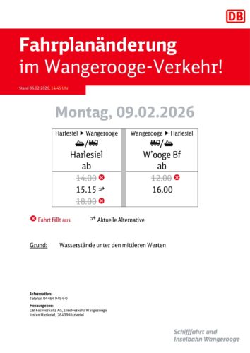 Die Bahn nimmt den Fährverkehr von und zur Insel Wangerooge wieder auf.