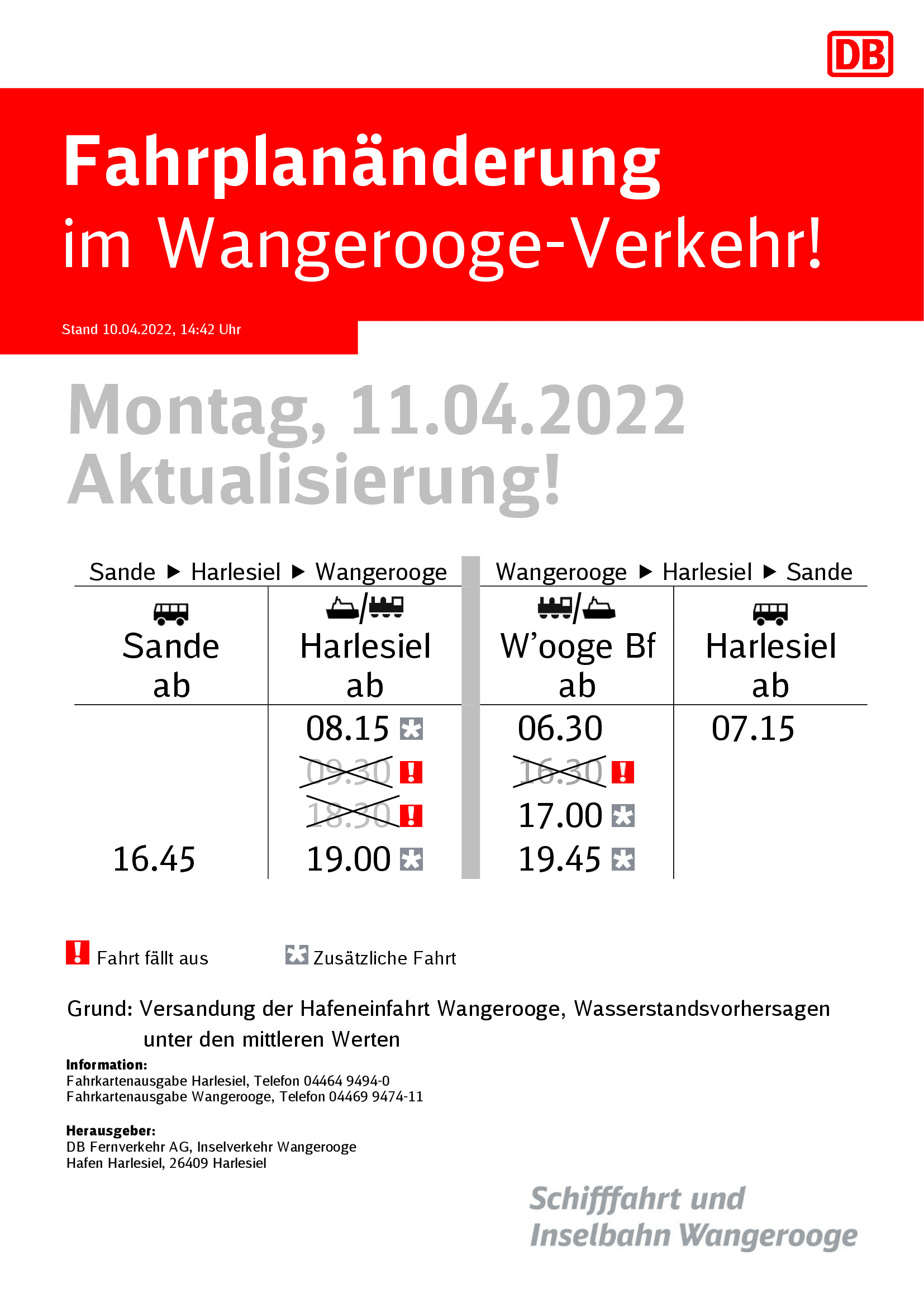 Aufgrund von Ablagerungen in der Hafeneinfahrt Wangerooge, sowie des Ausfalls eines Fahrgastschiffes kommt es zu weiteren Änderungen im Verkehr von und zur Insel W […]