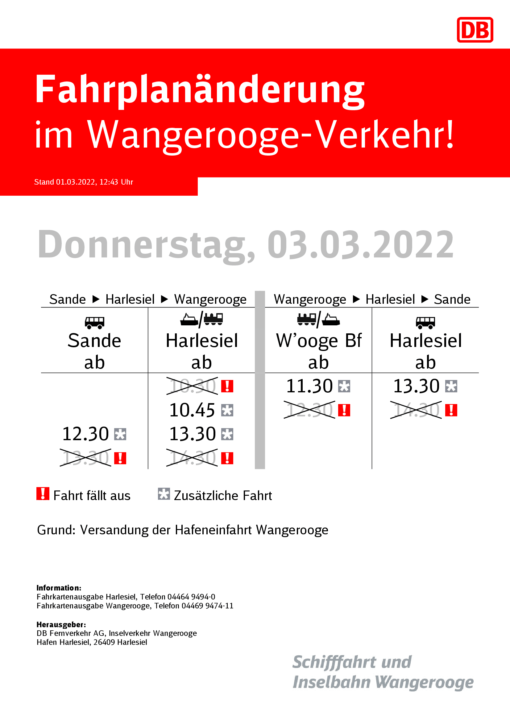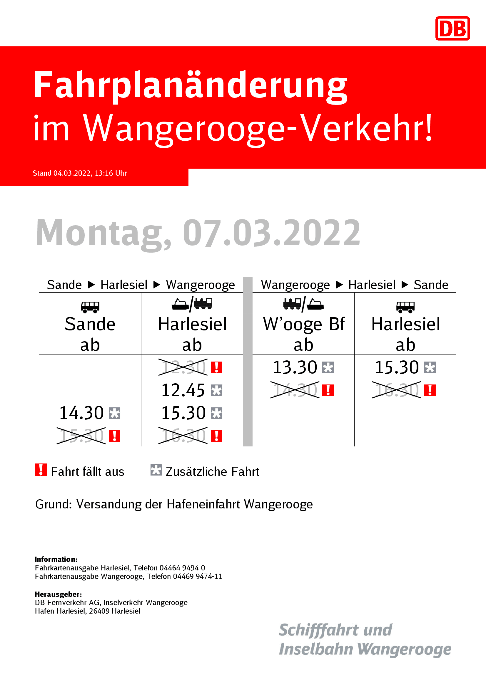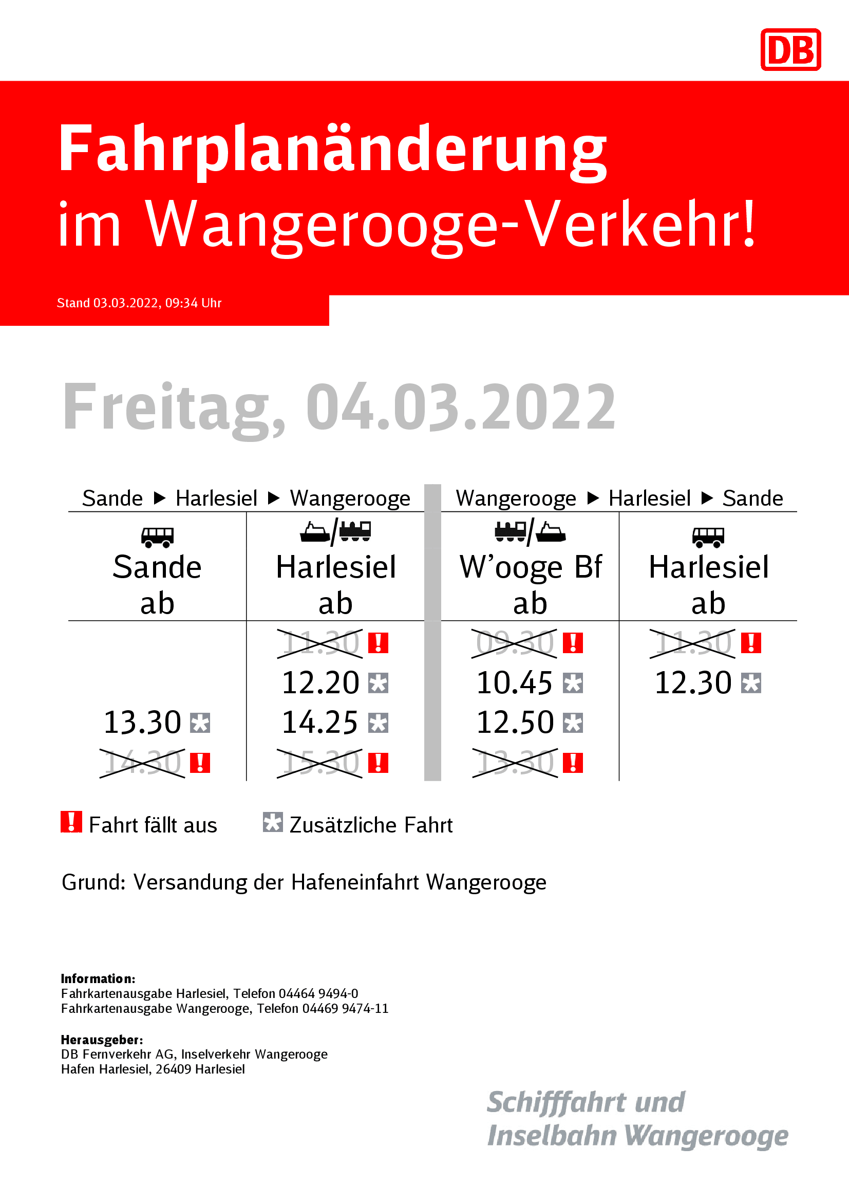 Da der Hafen in Wangerooge versandet wirft dies den gesamten Fahrplan am Mittwoch und Donnerstag durcheinander.